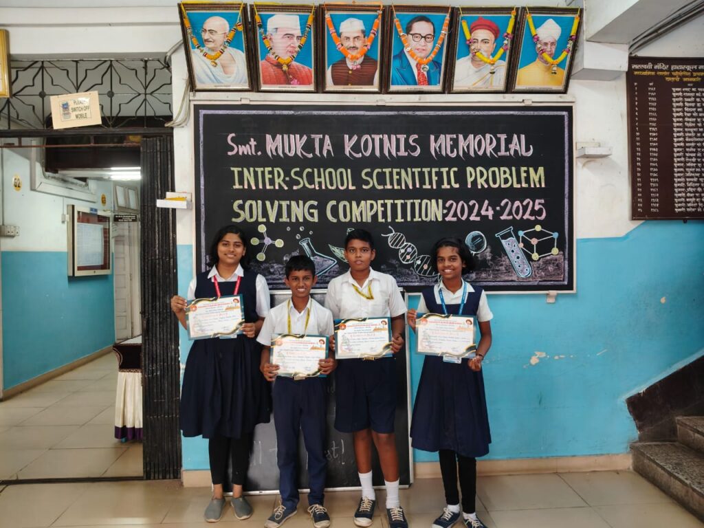 कै. श्रीमती मुक्ता कोटणीस मेमोरियल इंटरस्कूल सायंटिफिक प्रॉब्लेम सॉल्व्हिंग स्पर्धेत मराठी माध्यमातील विद्यार्थ्यांच्या विजयी पराक्रम
