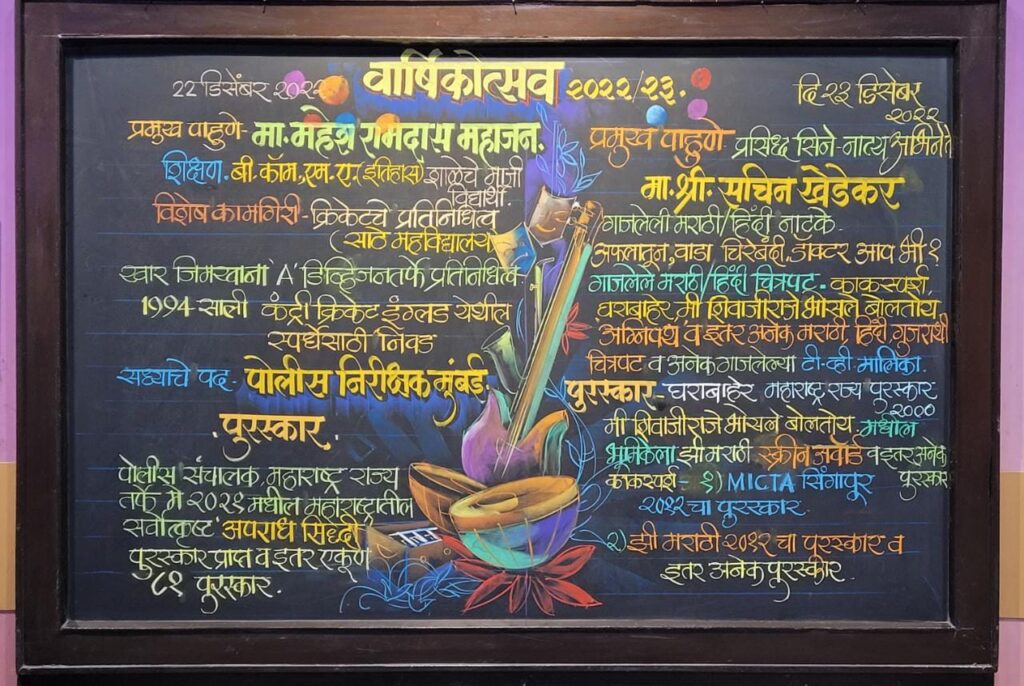 पार्ले टिळक विद्यालय मराठी माध्यमिक शाळेच्या वार्षिकोत्सवानिमित्त शाळेच्या प्रवेशद्वारापाशी माजी विद्यार्थी साई दिलीप आजविलकर यांने टिळकांची अतिशय सुंदर रांगोळी काढली आहे. प्रथेप्रमाणे प्रमुख पाहुण्यांची माहिती शाळेच्या फलकावर लिहीली आहे. तब्बल दोन वर्षांनी शाळेचे पटांगण वार्षिकोत्सवानिमित्त दिमाखात सजले आहे. यावर्षी पहिल्यांदाच LED स्क्रीन चा वापर पार्श्वभूमीसाठी करण्यात आला असून त्यामुळे विद्यार्थ्यांचे कलागुणदर्शनाचे सर्वच कार्यक्रम अतिशय देखण्यारूपात सादर झाले. पहिल्या दिवसाच्या कार्यक्रमासाठी प्रमुख पाहुणे म्हणून पोलीस निरीक्षक आर्थिक गुन्हे शाखा मुंबई, श्री. महेश महाजन हे उपस्थित होते. विशेष म्हणजे राज्य सरकारचे एकूण ८१ पुरस्कार प्राप्त महाजन हे शाळेचे १९९१ बॅचचे माजी विद्यार्थी आहेत.